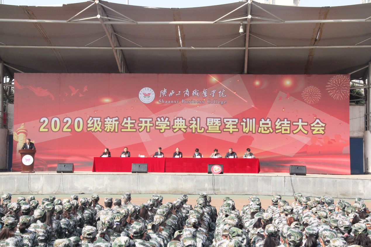 10月23日上午9时,2020级新生开学典礼暨军训总结大会在郭杜校区运动场举行。校党委书记王家春,校长许春霞,副校长郭红霞、张新华、邓颂东、杜京出席,军训团团长臧强、陕西九仓国际货运有限公司总经理康萍应邀参加。大会由校党委副书记刘锋主持。