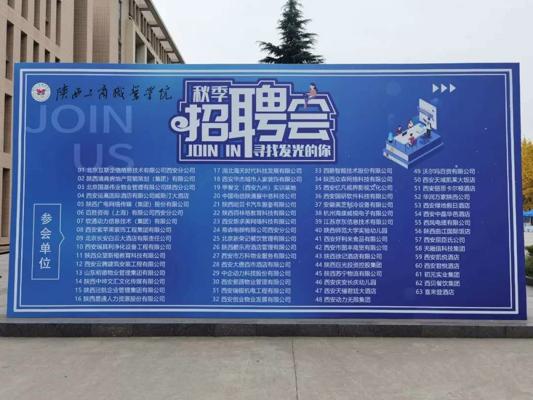 为切实做好2021届、2020届毕业生就业工作,搭建毕业生与用人单位的交流平台,为用人单位输送应用型人才。10月24日,陕西工商职业学院2020年秋季综合类校园招聘会在郭杜校区学术广场举办。校长许春霞、副校长邓颂东现场指导,来自北京、上海、浙江、安徽、西安等省市的63家企业现场遴选英才,涉及通信、机电、酒店管理、旅游管理、物流、财会、学前教育等2033个岗位,近1200名校内外毕业生参加了校园招聘会。