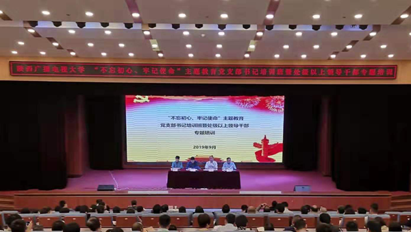 9月23日下午,学校“不忘初心、牢记使命”主题教育党支部书记培训班暨处级以上领导干部专题培训在郭杜校区开班。省委第二批主题教育第六巡回指导组副组长、西安美术学院党委副书记任晓峰现场指导。全体在校学校领导,各党总支书记、总支委员,各党支部书记、支部委员,全体处级干部等200余人参加了培训。校党委副书记罗新远主持开班式。