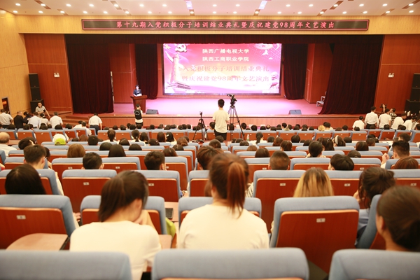 6月27日下午,学校第十九期入党积极分子培训班结业典礼暨庆祝建党98周年文艺汇演在郭杜校区综合楼学术报告厅举行。全体校领导出席,各党总支(直属党支部)书记、各党支部书记、教师代表及第十九期入党积极分子培训班全体学员共400余人参加了活动。