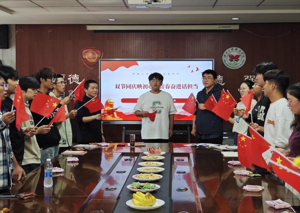全体师生手持国旗共唱《我和我的祖国》,以赤诚歌声抒发爱国情怀,共祝祖国繁荣昌盛。学院为留校学生送上月饼、石榴,传递节日关怀。
